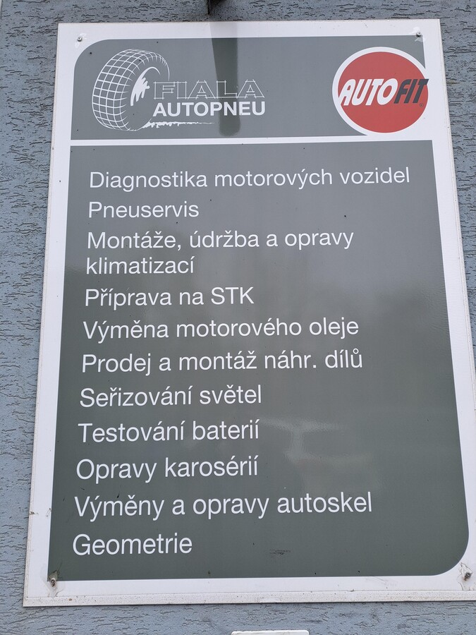 Společnost Pneuservis autoservis Fiala poskytuje komplexní služby autoservisu pro osobní i nákladní vozy. Provádíme servis a opravy vozidel všech značek, které jsou zastoupeny na českém trhu. Zajišťujeme také přípravu vozidla na STK. Oproti opravám v autorizovaném servisu vám můžeme slíbit značnou úsporu nákladů díky nižším cenám. Veškeré služby vám poskytneme na jednom místě a bez auta vás nenecháme dlouho, díky zásobování náhradních dílů z největšího skladu v ČR. Pokud by i tak byla nevyhnutelná delší oprava vozu, nabízíme zapůjčení náhradního vozidla. Poskytujeme také komplexní služby pneuservisu včetně výměny a opravy pneumatik, prodeje nových pneu a disků i mytí pneumatik.